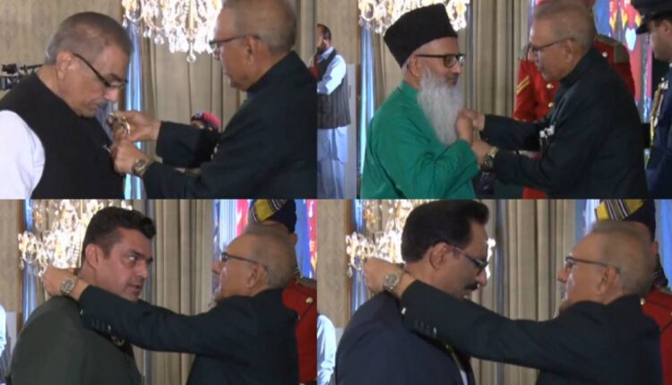 یوم پاکستان کے موقع پرایوان صدر میں خصوصی تقریب منعقد ہوئی جہاں ملک کیلئے مختلف شعبوں میں نمایاں خدمات انجام دینے والی شخصیات کو مختلف اعزازات سے نوازا گیا۔