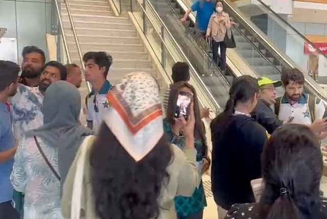 سڈنی: قومی کرکٹ ٹیم کی سڈنی آمد، مداحوں کی کھلاڑیوں کے ساتھ ساتھ سیلفیاں، سیمی فائنل میں پہنچنے پر مبارکباد دیتے رہے، ٹیم بنگلادیش کو اہم میچ میں ہرانے کے بعد ایڈیلیڈ سے سڈنی پہنچی ہے۔