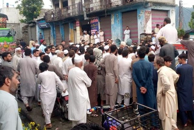 متاثرہ خاندان نے 9 افراد کے قتل کے خلاف اہل علاقہ کے ہمراہ لاشیں سڑک پر رکھ کر احتجاجی مظاہرہ کرتے ہوئے شدید نعرے بازی کی۔