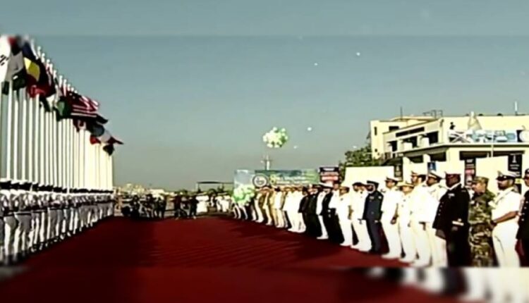 پاک بحریہ کے زیراہتمام 8 ویں کثیر القومی بحری امن مشقوں میں 50 سے زائد ممالک کے نمائندگان بحری اثاثوں ، مبصرین اور سینئر افسران کے ساتھ شریک ہیں، تقریب کے دوران امن مشق میں شامل 50 ممالک کی پرچم کشائی بھی کی گئی۔