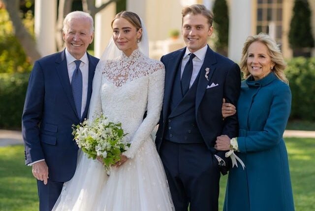 واشنگٹن: امریکی صدر جو بائیڈن اور خاتون اوّل جَل بائیڈن کی پوتی نیاؤمی کی شادی وائٹ ہاوٴس کے لان میں منعقد ہوئی جس میں اہل خانہ سمیت اہم شخصیات نے شرکت کی۔
