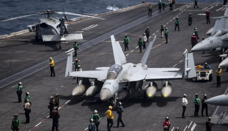 چین میں امریکی طیارہ بردار جہاز پر30 منٹ میں ہیلی کاپٹر اور لڑاکا طیارہ تباہ ہوگیا